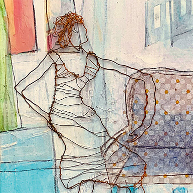 Feine Drahtlinien verwandeln sich in Figuren, Tiere oder Objekte und erhalten über Nacht durch eine Oxidationslösung eine lebendige Rostpatina. Parallel dazu entstehen auf Gelplatten fantasievolle Collagepapiere mit vielschichtigen Strukturen. Mit Acrylfarben, Schablonen, Masken und Materialien wie Netzen, Gummibändern oder Schnüren entwickeln Sie Drucke voller Tiefe und Textur. Die gestalteten Papiere werden kombiniert, vernäht und mit zeichnerischen sowie malerischen Akzenten weiterbearbeitet. An der Nähmaschine entsteht ein eigenständiges Bildelement, das später als collageartiger Akzent in die Gesamtkomposition integriert wird. Schritt für Schritt wächst so ein individuelles Werk, in dem am Ende die gerostete Drahtfigur plastisch erhaben eingebettet ist.