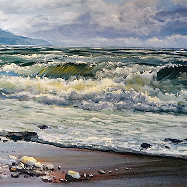 Mal dunkel und tosend, mal flach und leuchtend zeigt sich das Zusammenspiel von Wasser, Wolken, Farben und Licht.