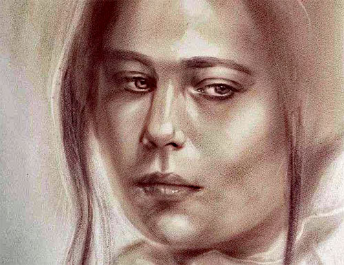 Die Faszination der Trockenpinseltechnik beruht auf der Tatsache, dass nicht die Linie das Konstruktionsmittel beim Bildaufbau ist, sondern die Fläche. Das Bild entsteht sozusagen aus einer Nebelwolke, aus der sich die Gesichtszüge langsam formen und verschärfen.