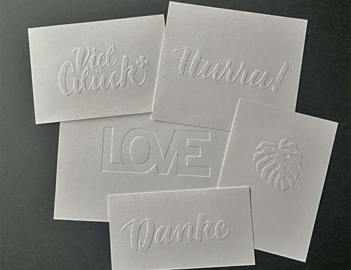 Erlernen Sie die faszinierende Technik der Handprägung. Erweitern Sie das Spektrum Ihrer Ausdrucksmöglichkeiten um eine dritte Dimension und machen Sie sich die Wirkung von Licht und Schatten in Ihren Arbeiten zu Nutze. In diesem Kurs erlernen Sie die Grundlagen des Hand- und Brushletterings, üben ein Brushlettering-Alphabet und Faux Calligraphy, entwerfen Buchstaben, Schriftzüge oder andere Motive und prägen diese anschließend mittels einer selbst gefertigten Schablone auf Papier. Sie erhalten Tipps zur Gestaltung und Hilfe bei praktischen Fragen zum Lettering und Prägen, so dass schließlich ganz persönliche Gruß- und Glückwunschkarten, Lesezeichen oder auch freie Arbeiten entstehen können.