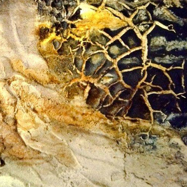 Starke Strukturen erschaffen Sie mit Marmormehl, XL Crackle Paste und Krakeliermedium (Restmaterial aus dem Vorgängerkurs „Wir lassen es krachen“ kann gerne mitgebracht und weiter verarbeitet werden).