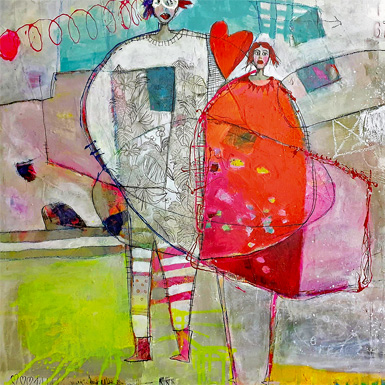 Sie beginnen mit kraftvollen Farbaufträgen in den unteren Bildebenen. Darauf setzen Sie lichte Lasuren, glänzende Lacke, Schriften oder Collagen. Schicht für Schicht entfaltet sich ein vielschichtiges Kunstwerk. Linien und Konturen halten Formen zusammen oder grenzen sie bewusst voneinander ab – ein Wechselspiel, das Spannung und Ausdruckskraft