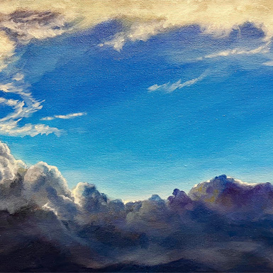 Anhand einer Vorlage malen Sie ein Wolkenmotiv in wasservermalbarer Ölfarbe.