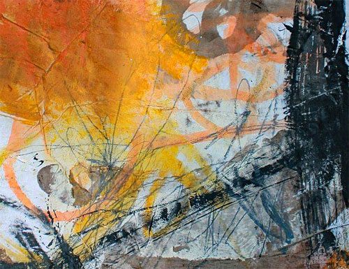 Sie experimentieren mit verschiedenen Kamin-Aschen, auch in Kombination mit weiteren Materialien wie Bitumen, Quarzsand, Pigmenten, Acrylfarben und Dispersionsfarbe.