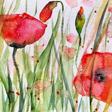 Nach einer Einführung, in der die wichtigsten Materialien vorgestellt und ihre Eigenschaften erläutert werden, tasten Sie sich an die Aquarellmalerei heran. Auf geeignetem Papier werden die zuvor angemischten Farben verteilt, fließen gelassen, sanft verlaufen oder miteinander verschmolzen. Gemeinsam entstehen erste kleine Aquarelle, in denen die Grundtechniken geübt werden. Angewendet werden sie in einem floralen Bildmotiv, das gemeinsam gemalt wird.