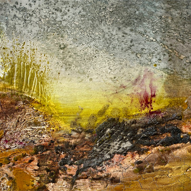 Erhabene Strukturen entstehen auf Leinwand, Karton oder Holzuntergründen, mit Pinsel, Spachtel, Heißluftföhn und Bügeleisen schreiten wir zur Tat.