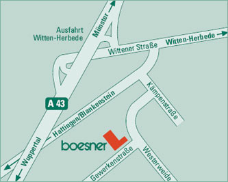 Sehr günstig ist die direkte Verkehrsanbindung an die A 43. Aus allen großen Städten des Ruhrgebiets erreichen Sie uns in maximal 40 Minuten.