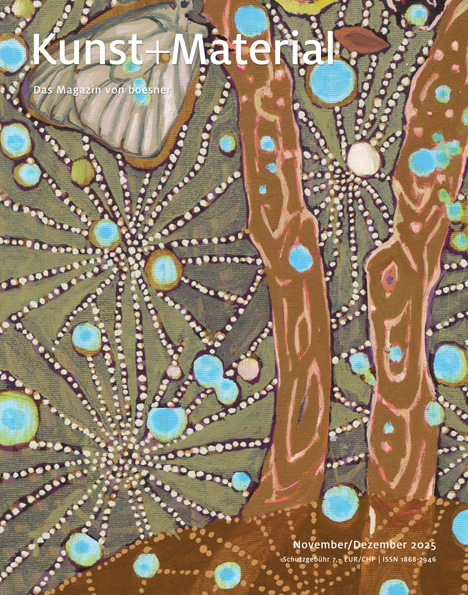 Darüber hinaus gibt es in der aktuellen Ausgabe viel Wissenswertes rund um Künstlermaterial und seine Anwendung: Die Rubrik „Technik“ beleuchtet die Vorzüge von selbst gemachtem Kreidegrund oder gebrauchsfertigem Gesso. Das Inspirationsthema zeigt, wie spontane Monotypien schneller Skizzen mit Gel-Platten gedruckt werden können, und die Hintergrundstory beschäftigt sich mit dem Bronzeguss und seiner Geschichte. Zudem bietet die neue Ausgabe viele interessante Materialtipps, Ausstellungshinweise und natürlich Empfehlungen für schöne Bücher, die auf jedem Gabentisch willkommen sind.