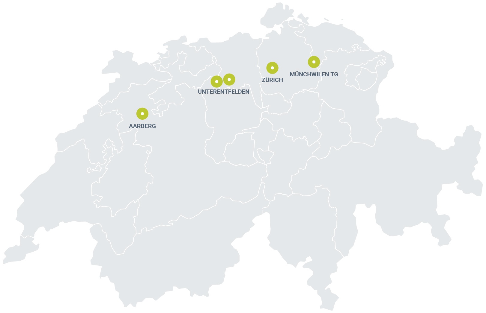 Vier boesner Niederlassungen in Aarberg, Münchwilen, Unterentfelden und Zürich