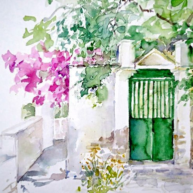 Das Aquarell lebt von der Leichtigkeit des Farbauftrages und dem weißen Grundton des Papiers.