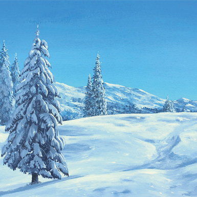 In diesem Workshop lernen Sie, wie man eine malerische weiße Schneelandschaft zum Leben erweckt, die locker wirkt, sanfte Farbverläufe hat und Weite suggeriert. Die Dozentin malt Schritt für Schritt mit, erklärt, welche Farbe der Schnee je nach Lichteinfall hat, wie man Bäume und Schneehänge malt und wie man einer Winterlandschaft, die eigentlich nur in homogenes Weiß gebettet zu sein scheint, räumliche Tiefe verleiht.