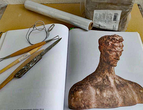 Nicht das exakte Abbild, sondern der künstlerische Ausdruck steht im Mittelpunkt. Der Ton wird zum Schluss durchteilt, ausgehöhlt und mit Tonschlicker wieder zusammengesetzt.