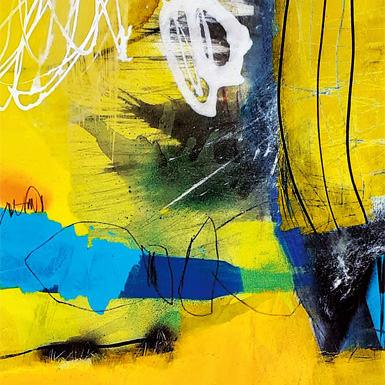 Beherzt Spuren auf der Leinwand anlegen, die im Laufe des Malprozesses wieder verschwinden oder doch noch aus dem Untergrund hervorblitzen.