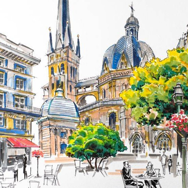 Skizzieren kann man mit allen Materialien, die griffbereit sind: Bleistifte, Aquarellfarben, Fineliner sowie alles in einer wilden Mischung. Dieser Kurs widmet sich dem Umgang mit wasserlöslichen Markern. Thematisch geht es um Strategien für das Sketchen im urbanen Raum.