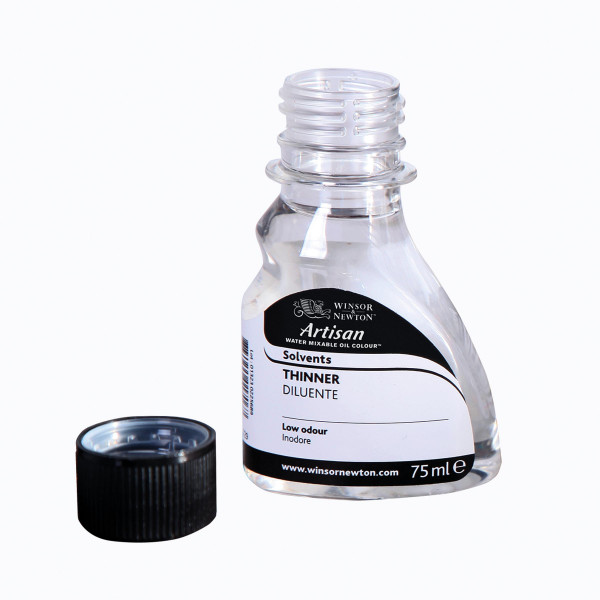 Ein klares, dünnflüssiges Verdünnungsmittel mit geringer Viskosität und einem geringen Geruch. Der Verdünner ist ein wirkungsvolleres Verdünnungsmittel als Wasser, da schon kleinere Mengen ausreichen, um die gleiche Verdünnung zu erzielen. Auch zum Reinigen von Utensilien und Gemälden verwendbar.