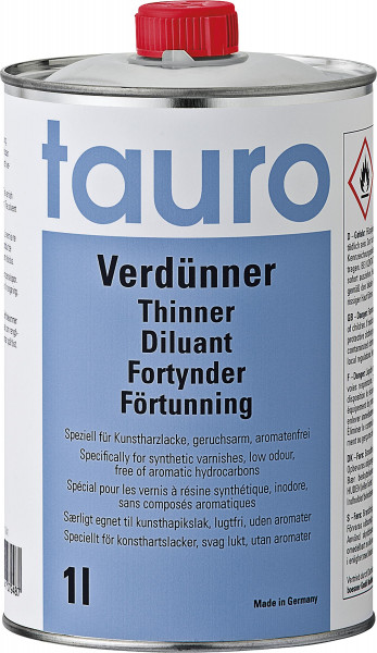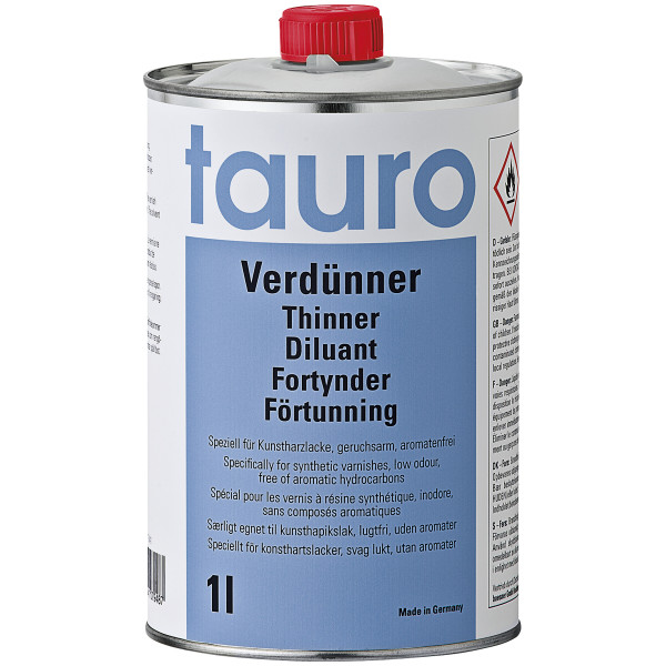 Durch die ausgewählten Lösungsmittelkombinationen fördert der geruchsarme Verdünner die Verlaufseigenschaften. Besonders geeignet zum Verdünnen von Ölfarben, Kunstharzen, Holzlasuren, Lackfarben etc.