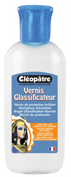 Hochglänzender Schutzlack für alle glatten Untergründe (inkl. Glas, Porzellan und Polymermasse). Dank seiner selbstglättenden Funktionsweise verleiht er – in mehreren Schichten mit einem weichen Pinsel aufgetragen – Oberflächen einen starken, nachhaltigen Glanz. Nach der Trocknung im Ofen (bei Verwendung geeigneter Materialien) oder an der Luft ist der wasserabweisende Schutzlack resistent gegen Kratzer, Hitze und UV-Strahlen. Ideal, um z. B. Gießlingen aus Silikonformen bzw. Gießlingen, die ansonsten durch Schleifen nachbearbeitet werden müssten, ein hochglänzendes Finish zu verleihen. Da das Material nicht ausgleichend wirkt, empfiehlt sich für raue, unebene Oberflächen Résine Glass‘ Lack als alternative Hochglanzbeschichtung. Umweltfreundliche Formel auf Wasserbasis.