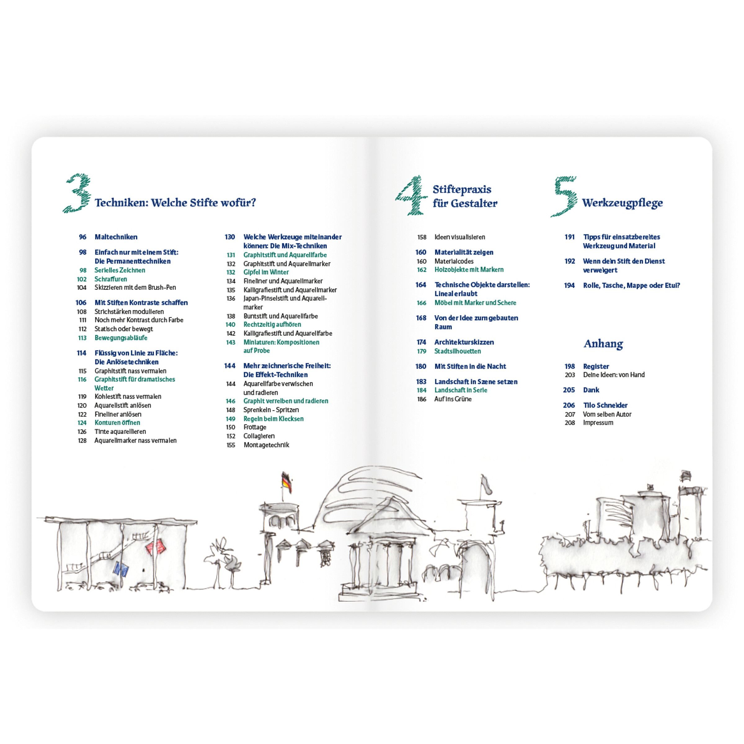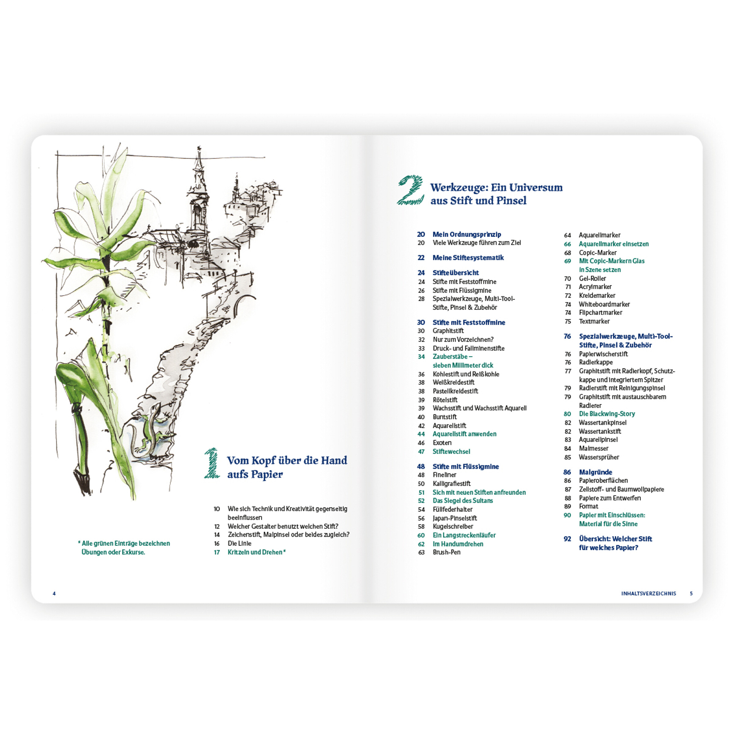 Zeichnen und Skizzieren ist Denken auf dem Papier. Die analoge Technik stimuliert Ihre Kreativität. Eine schier unendliche Auswahl an Stiften, Pinseln und Farben, Malgründen und Techniken stehen bereit, Ihre Ideen Gestalt annehmen zu lassen. Irgendwann haben Sie Ihre Lieblings-Werkzeuge gefunden. Trotzdem locken die Regale der Künstlermärkte stets mit Neuem. Tilo Schneider bringt Struktur in die unüberschaubare Vielfalt. Er rät, den eigenen Stil ab und zu mit neuen Werkzeugen und Techniken zu stimulieren. Vor allem aber empfiehlt er, einen individuell passenden Werkzeugkasten zusammenzustellen und zu pflegen. Welche Kriterien dafür gelten, welche Werkzeuge und Techniken sich wozu eignen und wie sie ihre volle Wirkung entfalten – das verrät er in seinem neuen Buch. Wer so viel zeichnet wie Tilo Schneider, entlockt den Zeichenwerkzeugen ungeahnte Fähigkeiten. Wer derart gerne Wissen weitergibt wie er, teilt diese Erfahrungen: Mischtechniken erkunden statt Einkaufen gehen …