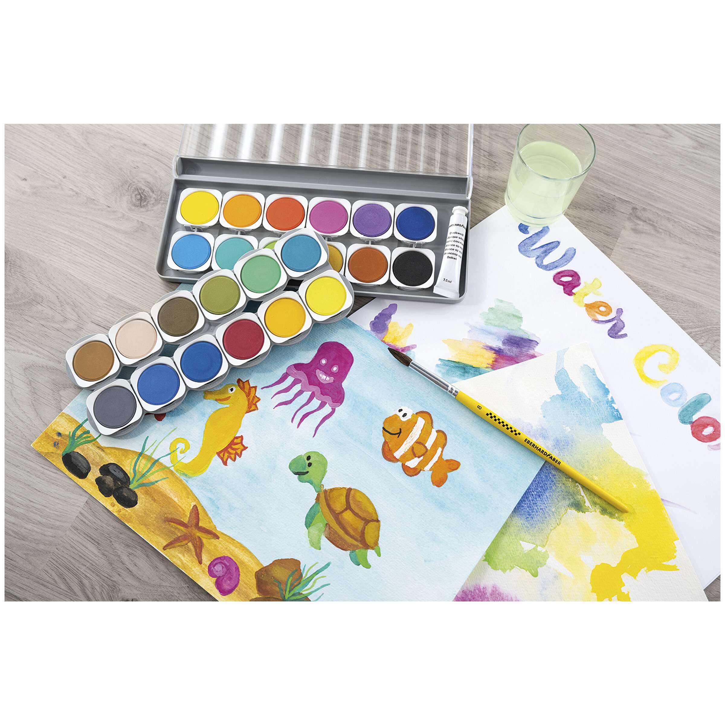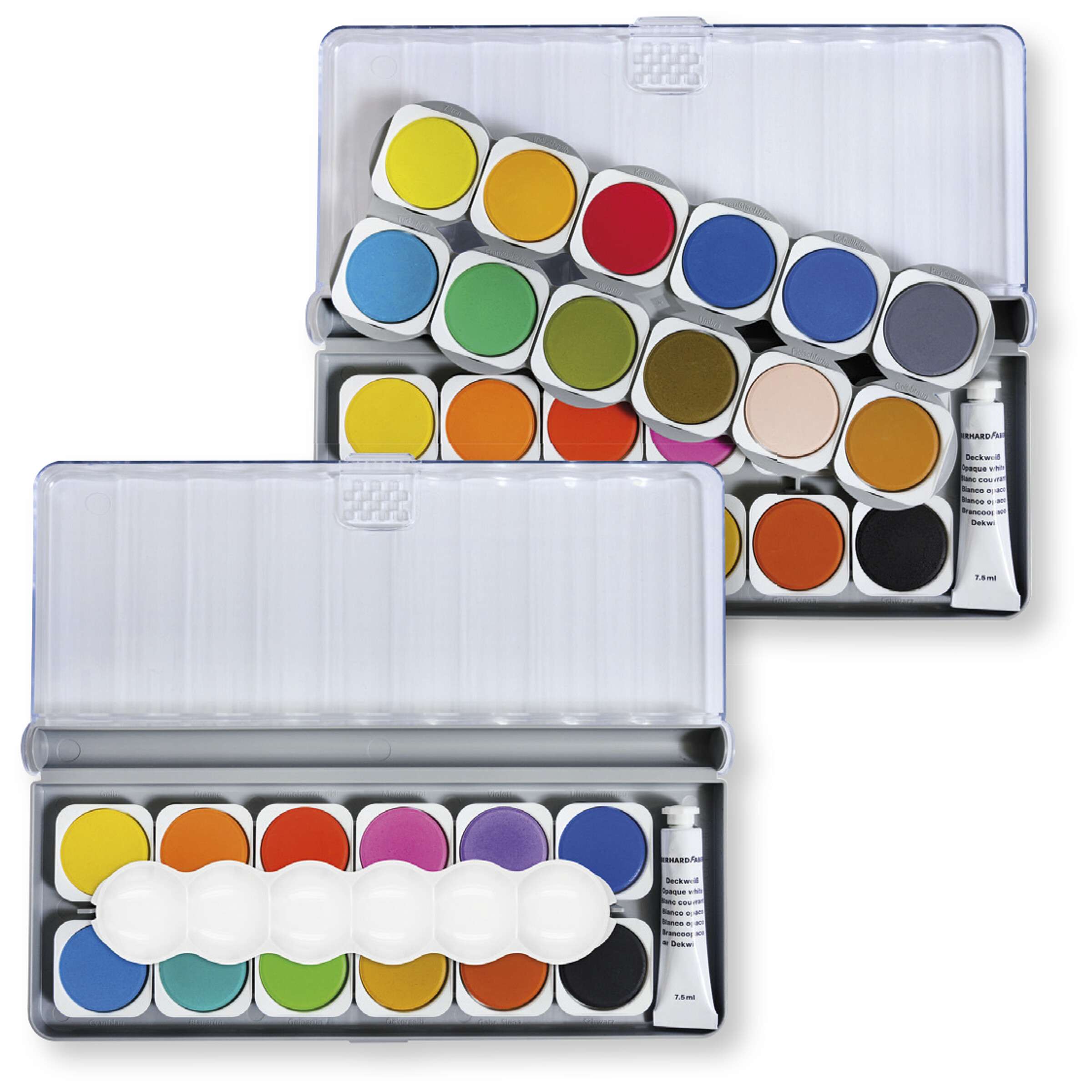 Der Winner Farbkasten ist perfekt geeignet für die Schule. Der transparente Deckel ist einfach abnehmbar und lässt sich somit einfach abwaschen. Der 12er-Farbkasten beinhaltet zusätzlich eine Mischpalette. Inklusive Deckweiß.